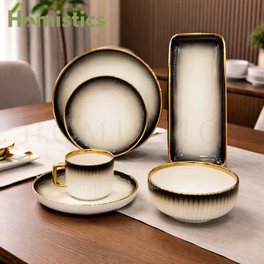 32Pcs Ceramic Dinner Set - White & Black Shaded