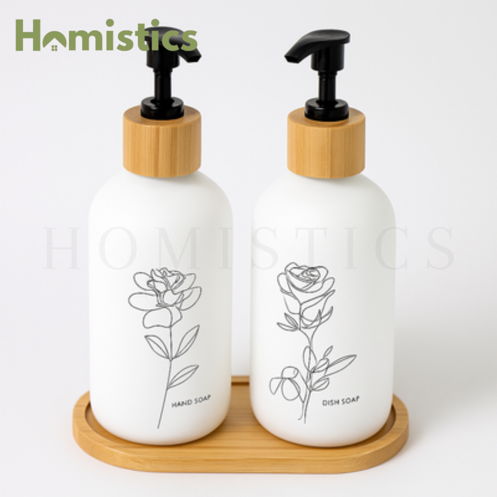 Frosted Glass Soap Dispenser Set with Bamboo Tray