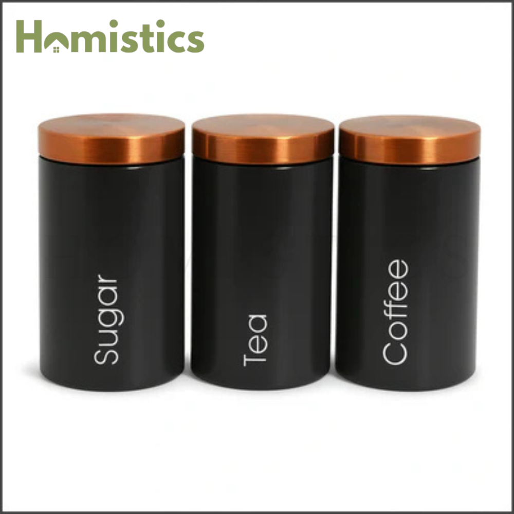 3 Pcs Matte Black Metal Kitchen Storage Canisters