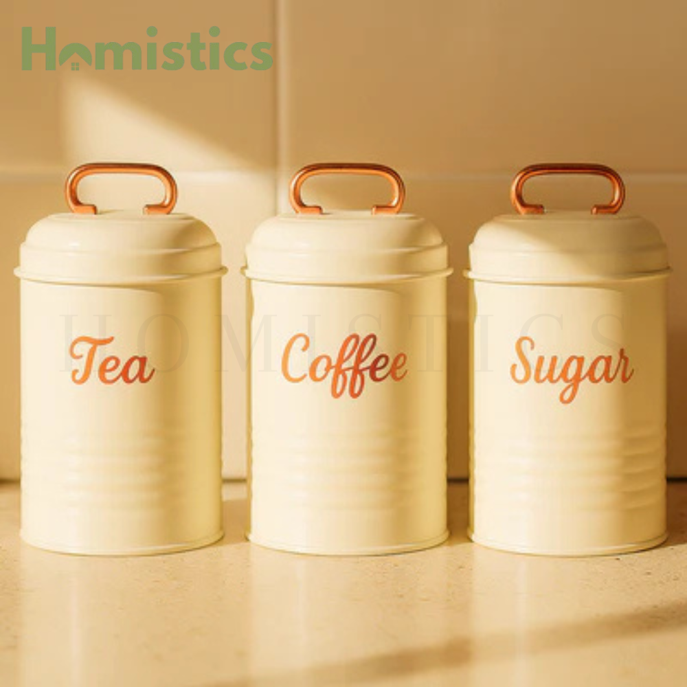 KITCHEN SET - SIMPLE, SOPHISTICATED, FUNCTIONAL - Set of 3 vintage inspired canisters for coffee, sugar,...