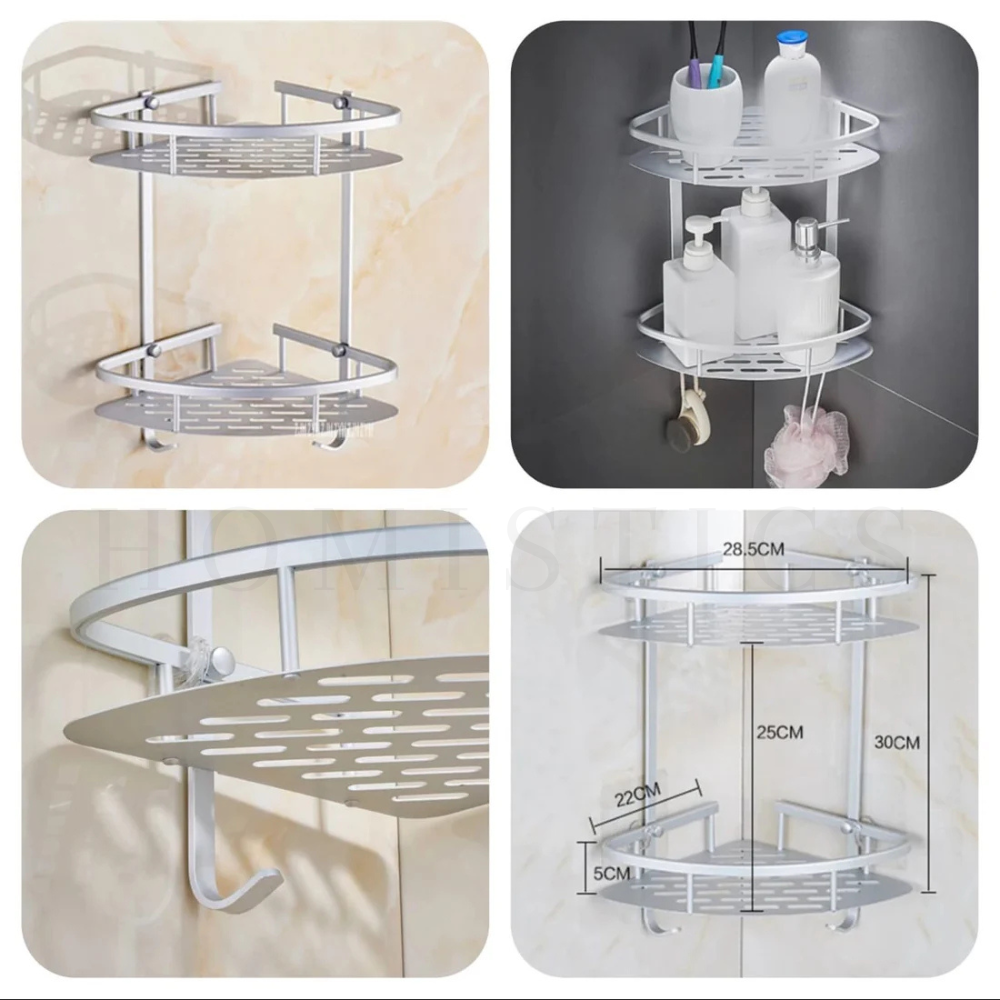 2 Layer Wall Mounted Aluminium Corner Shelf Rack
