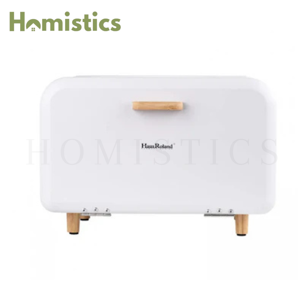 HausRoland Bread Box with Wooden Legs and Handle - White