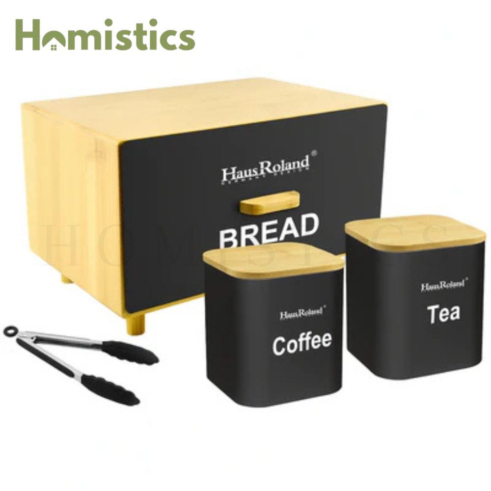 HausRoland Deluxe Bread Bin & Canister Combo Set - Black