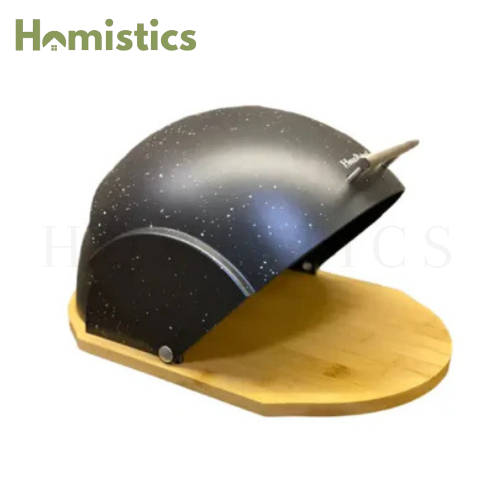 HausRoland Bread Box with Wooden Legs and Handle - Black
