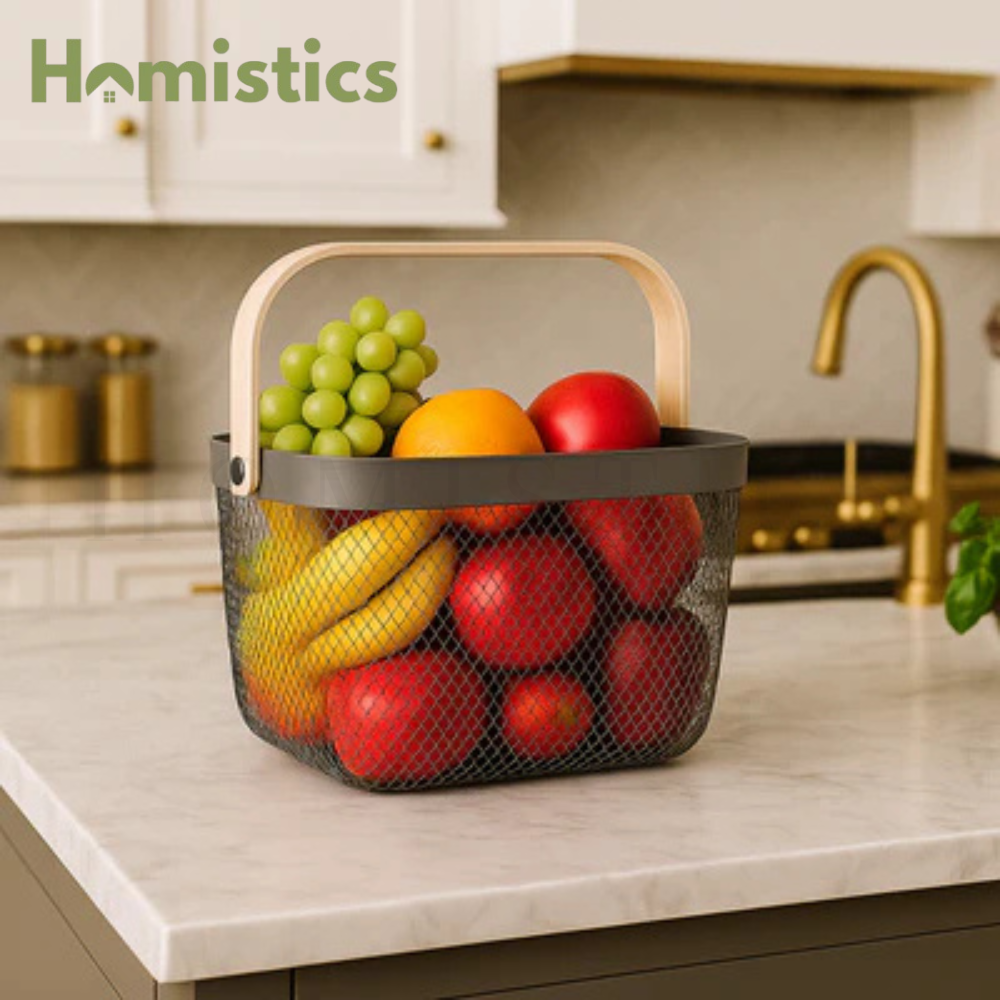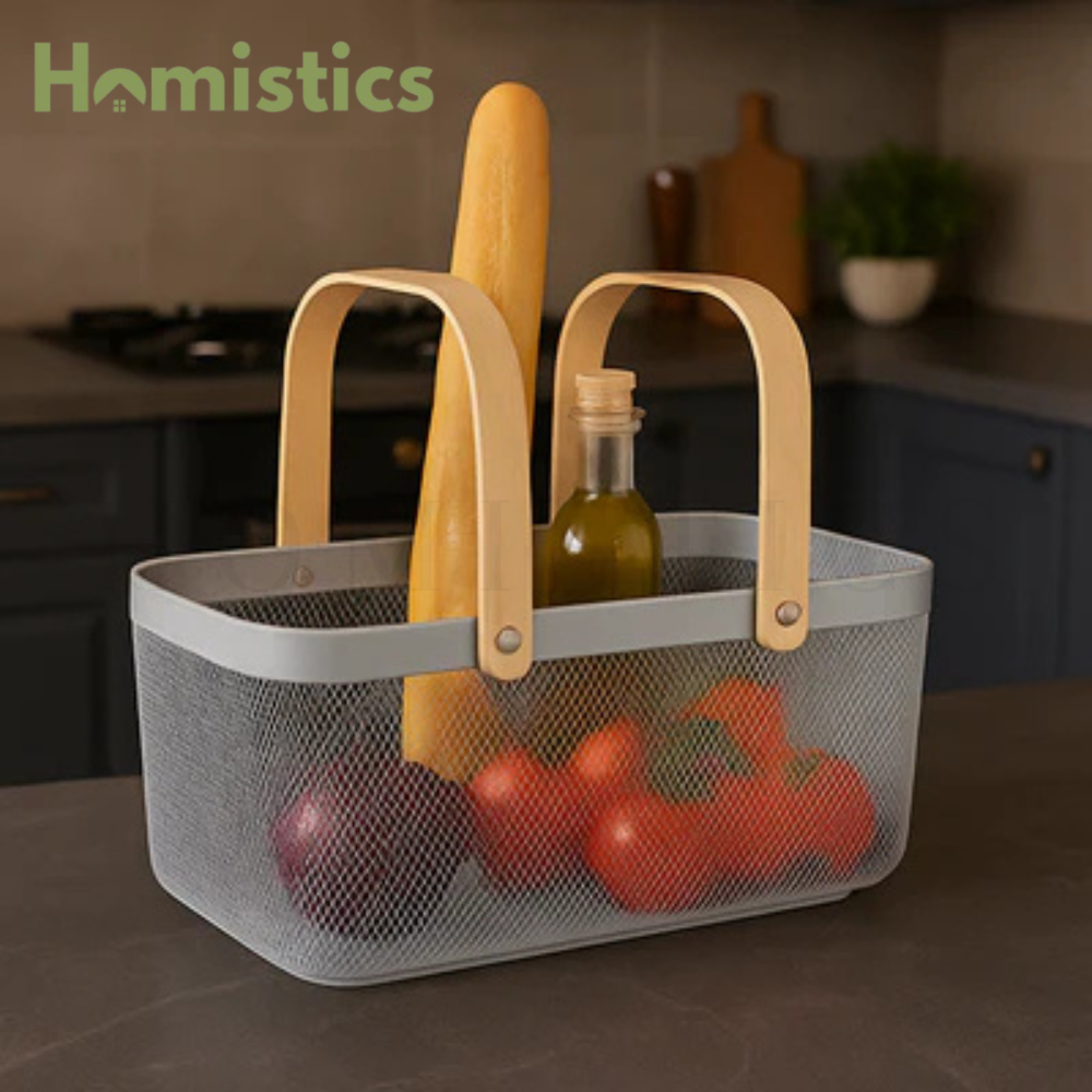 Rectangle Fruit/Veg Basket with Wooden Handles