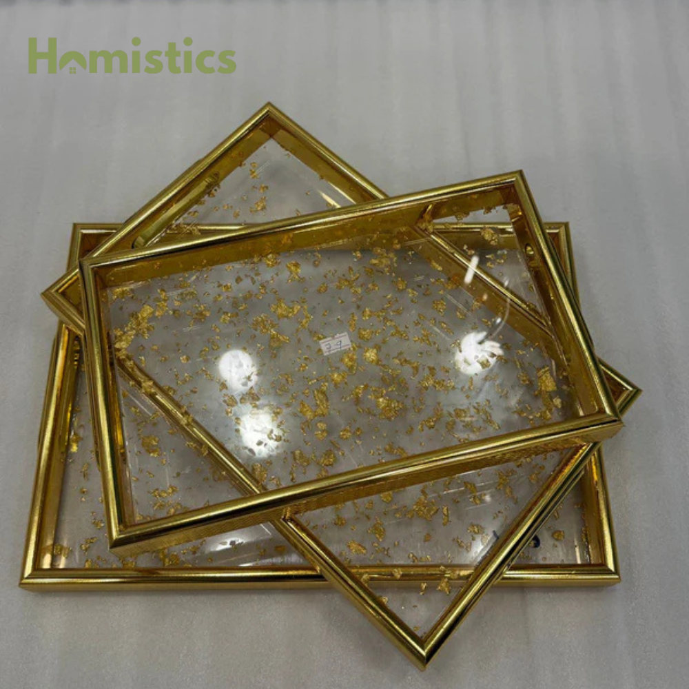3-Piece Gold Transparent Flowers -Design Serving Tray Set This is an elegant and versatile set...