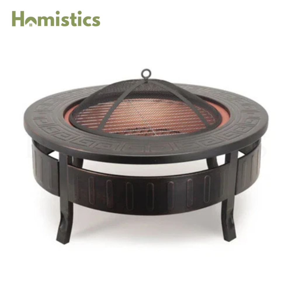 Multi-functional round metal fire pit, perfect to use as a BBQ when entertaining friends or...