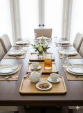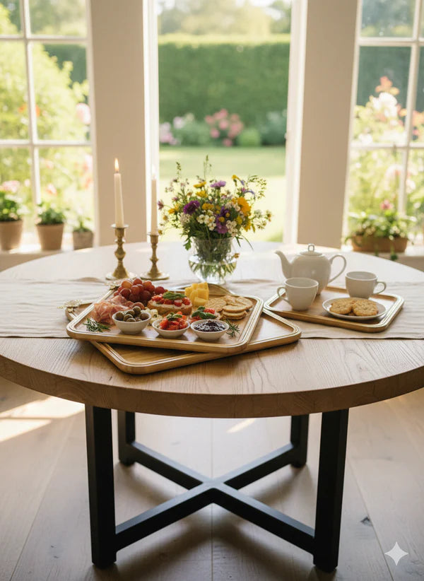 • Material: The main body of the trays appears to be made of bamboo or another light-colored wood. Bamboo is a popular choice for kitchenware because it's lightweight, durable, and sustainable.
