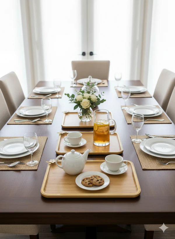 • Accents: Each tray has a gold-colored metal rim that lines the edge, giving it a sleek and sophisticated look.