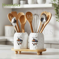 2-Piece Spoon Organizer with Bamboo Stand -Functional Elegant & Kitchen Storage