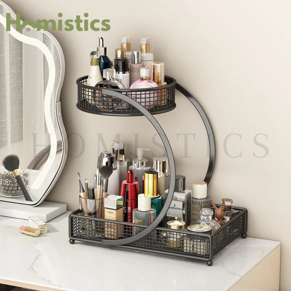 2-Tier Metal Cosmetic & Skincare Organizer Rack – Stylish Countertop Storage for Makeup, Perfumes & Toiletries