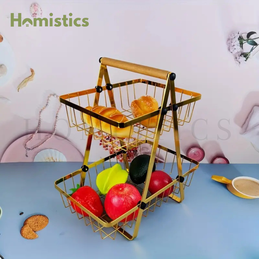The Detachable 2-Tier Fruit Basket is a versatile storage solution for your kitchen, pantry, or bathroom. Made of durable iron with a powder-coated black finish, this fruit basket can be used as a stacked 2-tier rack or as two separate baskets, giving you flexibility in how you use it. It’s perfect for storing fruits, vegetables, bread, snacks, spice bottles, toiletries, household items, toys, tools, and more, keeping your space neat, tidy, and organized.