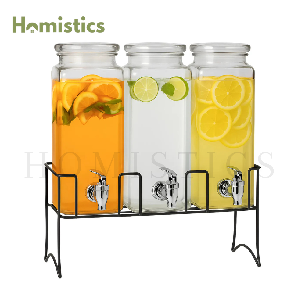 This multi-jar drink dispenser set is both practical and stylish, offering generous capacity for guests while ensuring effortless serving. Whether you're hosting a small get together ar a large celebration, this 3-in-1 beverage dispenser with stand is a must-have for your entertaining essentials
