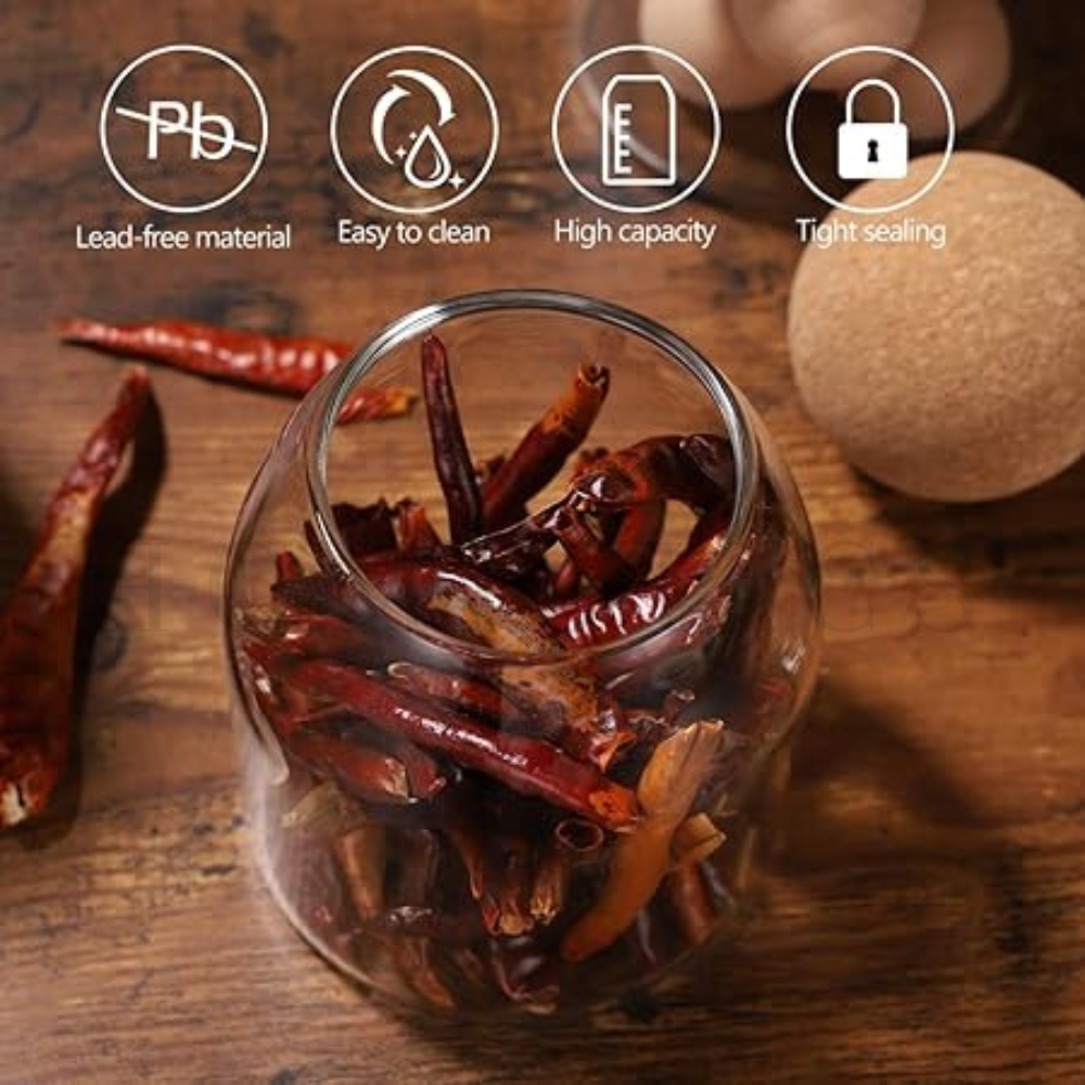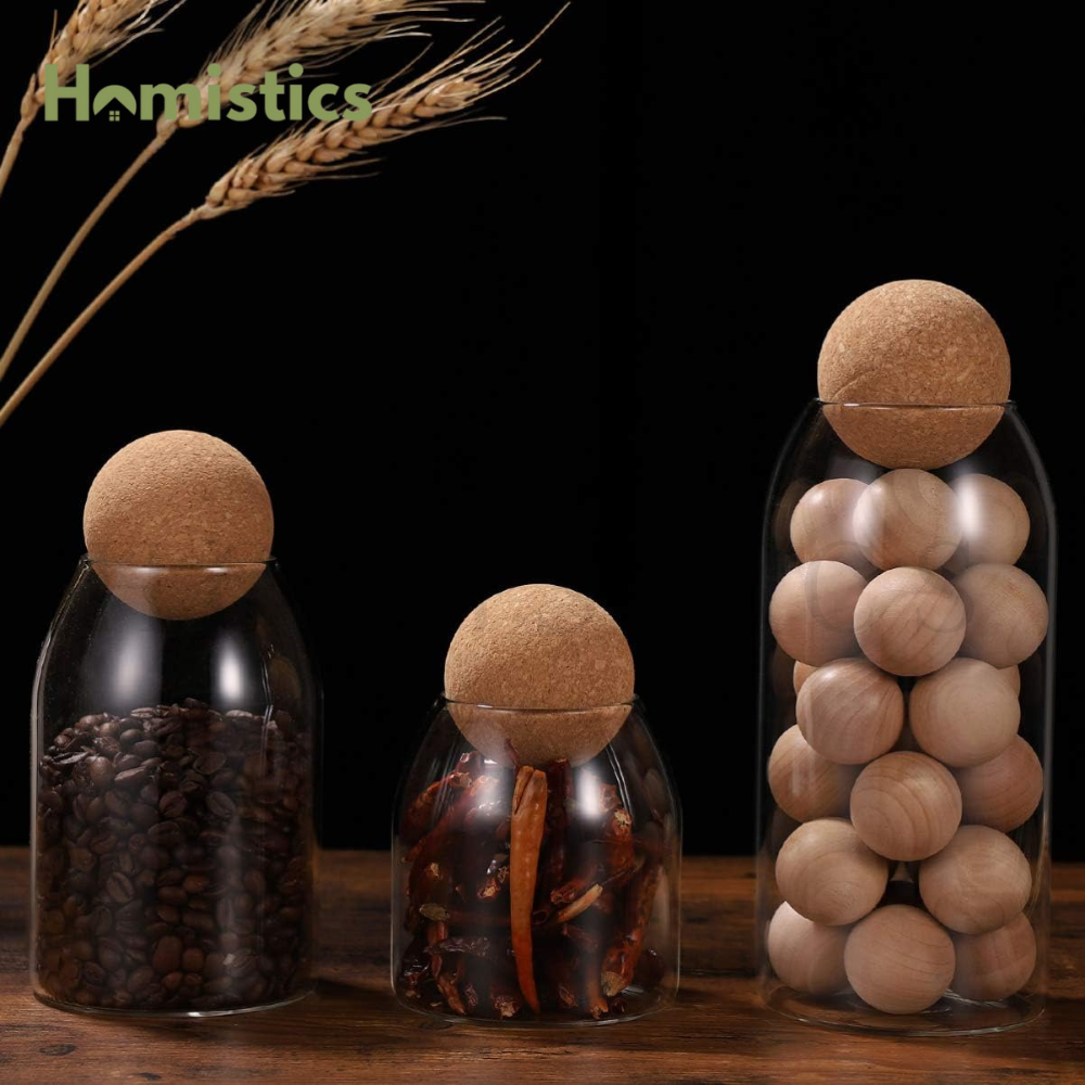 Perfect for storing dry goods like spices, tea, coffee, sugar, or snacks, as well as bathroom essentials like cotton pads or bath salts. The rounded cork ball tops not only keep contents fresh but also add a warm, organic touch to your decor.