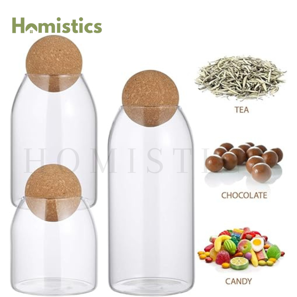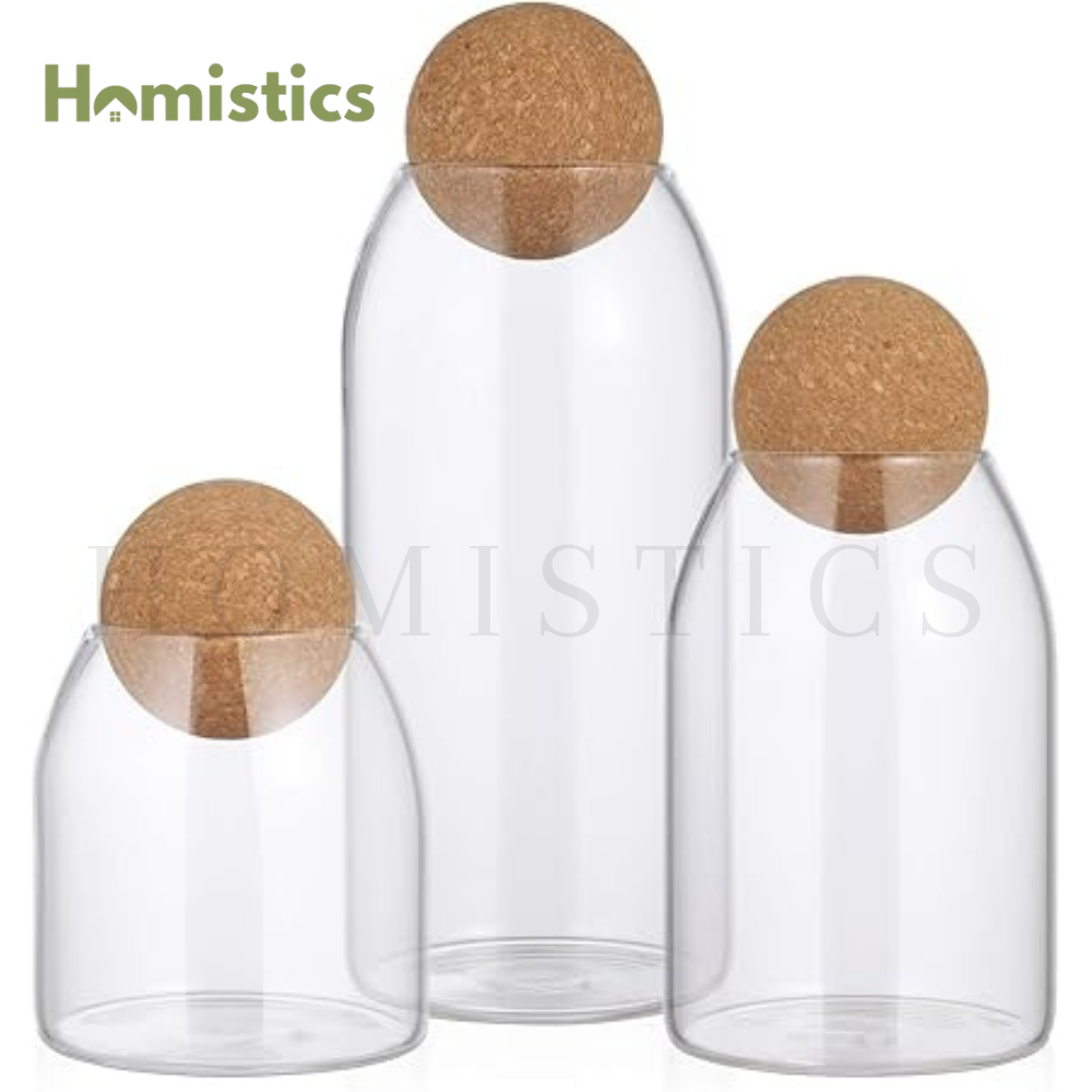 3-Piece Glass Jar Set with Cork Ball Tops Natural -Elegance for Your Storage Needs