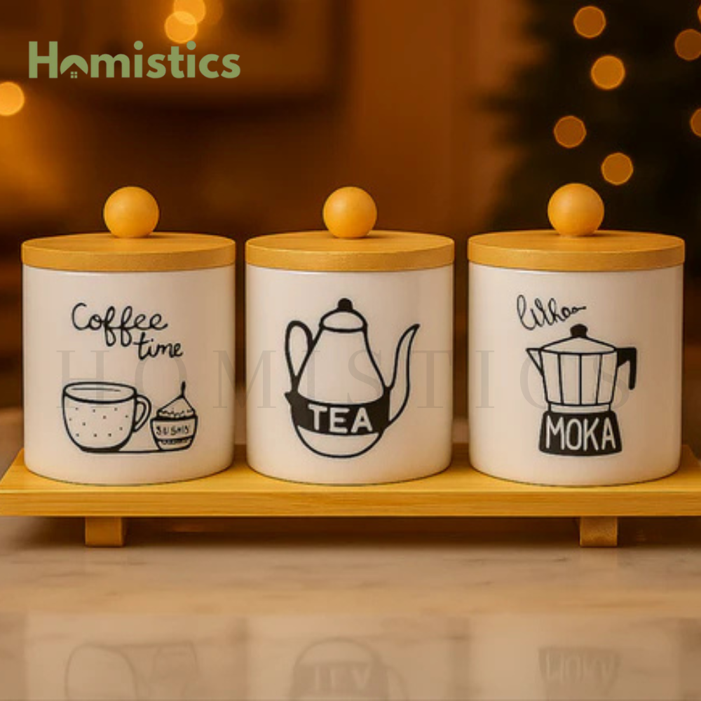 Bring elegance and practicality to your kitchen with this beautifully crafted 3-piece porcelain airtight jar set. Each jar is made from high-quality porcelain and fitted with a secure airtight lid to keep contents fresh and flavorful. Perfect for storing tea, coffee, sugar, spices, or snacks.