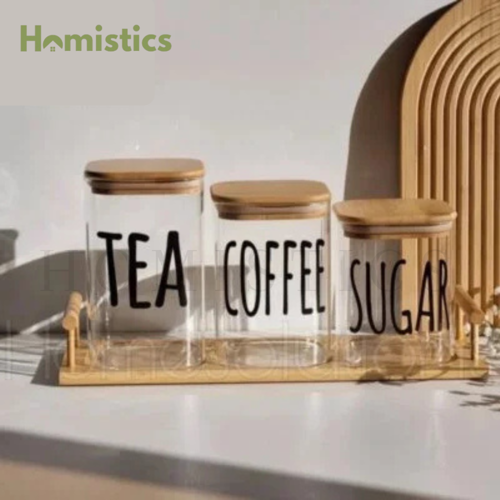 Keep your kitchen stylish and organized with this elegant 3pcs Airtight Glass Jars Set, perfect for storing tea, coffee, sugar, spices, or dry snacks. Made from premium-quality clear glass, these jars let you easily see contents while maintaining freshness. Each jar comes with a real bamboo lid fitted with a secure silicone seal, ensuring an airtight closure that locks in flavor and aroma.