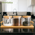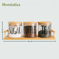 - Set of 3 airtight glass jars ideal for tea, coffee, sugar & more