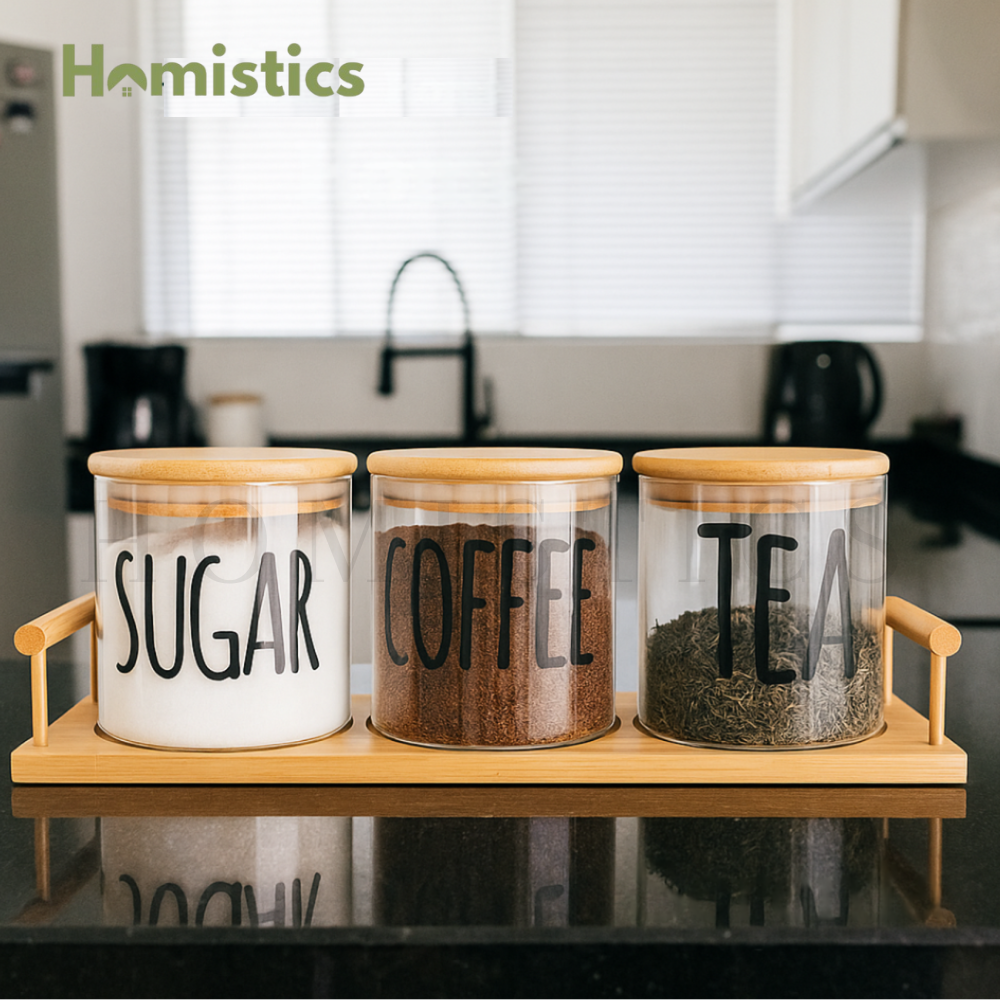 Keep your kitchen stylish and organized with this elegant 3pcs Airtight Glass Jars Set, perfect for storing tea, coffee, sugar, spices, or dry snacks. Made from premium-quality clear glass, these jars let you easily see contents while maintaining freshness. Each jar comes with a real bamboo lid fitted with a secure silicone seal, ensuring an airtight closure that locks in flavor and aroma.