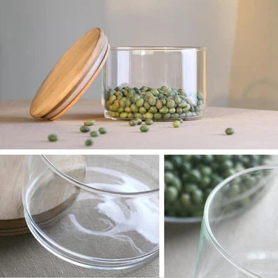 - High Borosilicate Transparent Glass Sealed Tank, Storage Tank, Grain Receiving, Bamboo and Wood Cover Bottle