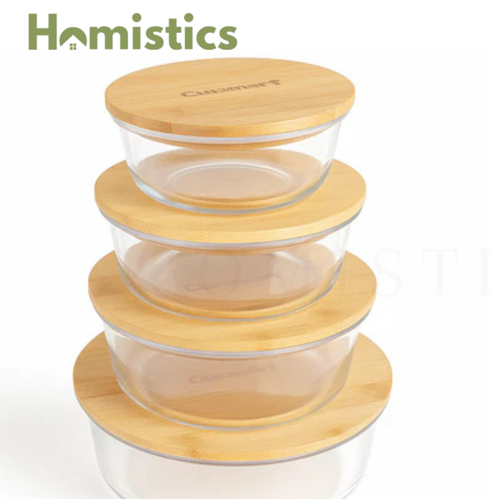 Each container features a natural bamboo lid with a silicone seal, ensuring an airtight and leak-proof fit to preserve freshness, flavor, and aroma. The smooth, round shape makes them ideal for storing soups, salads, snacks, leftovers, and meal prep portions while fitting neatly into your fridge or pantry.