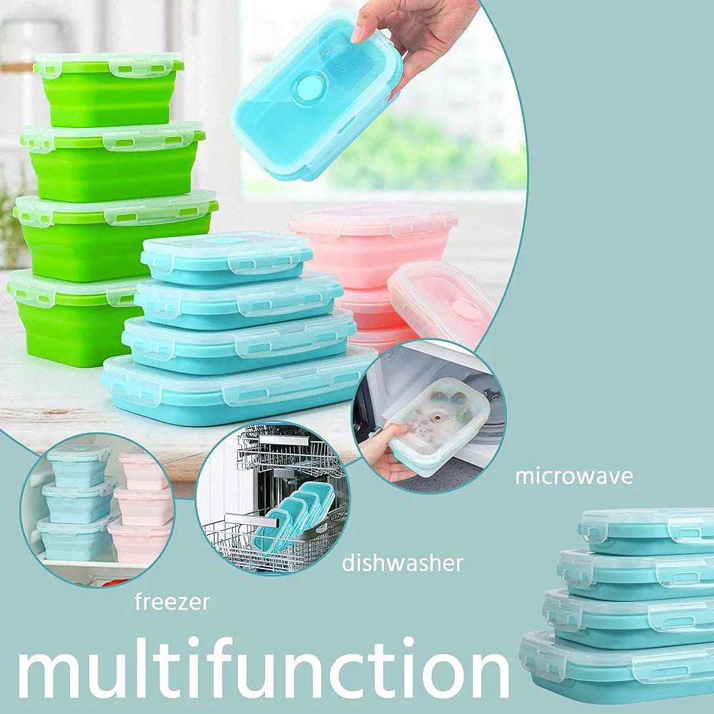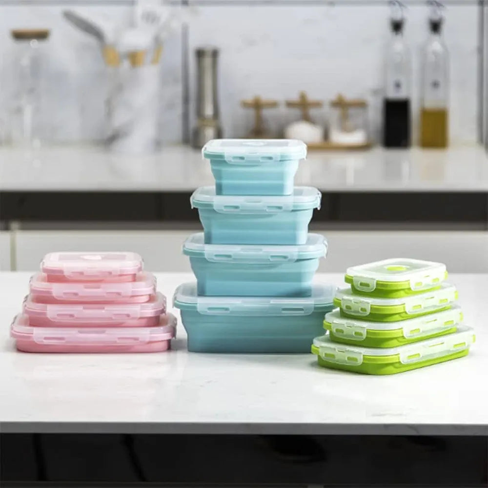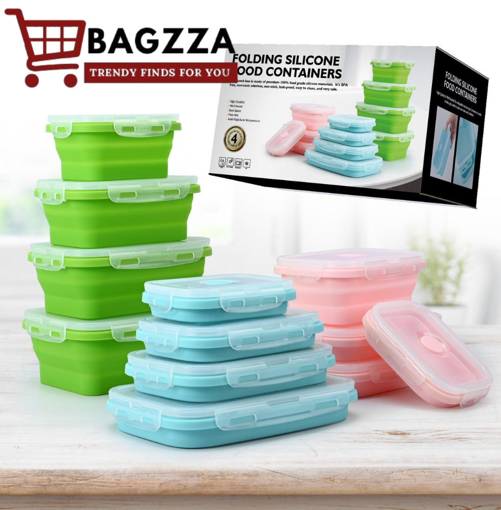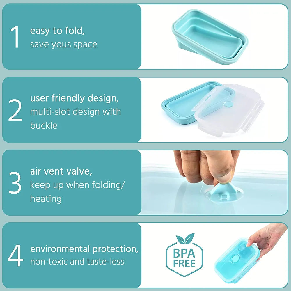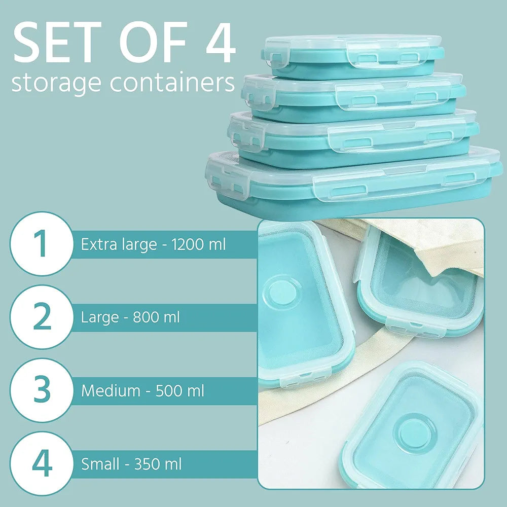 4-Piece Stackable Silicone Collapsible Lunch Box Set with Lids