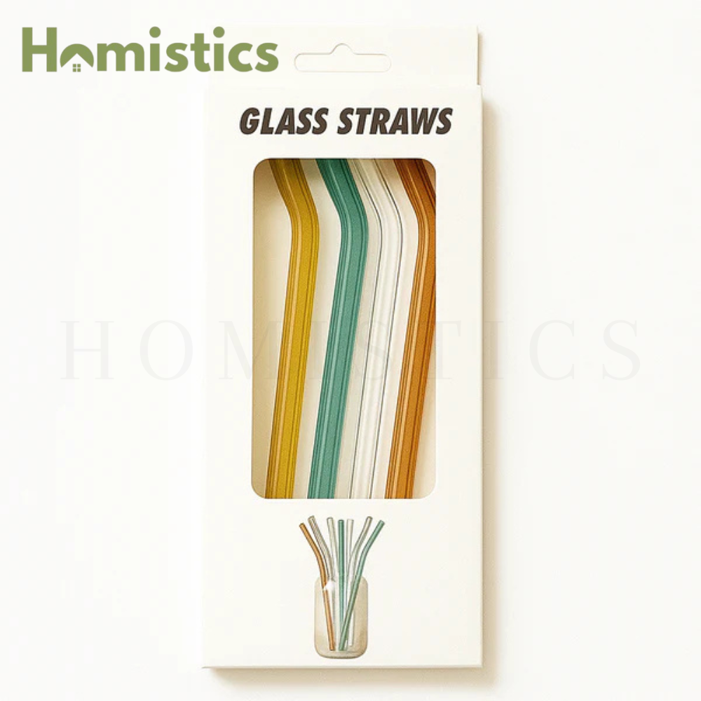 Upgrade your sipping experience with our 4-piece reusable glass straw set, designed for both elegance and sustainability. These premium-quality straws are made from durable borosilicate glass, ensuring they are heat-resistant, BPA-free, and safe for all your favorite beverages — from smoothies to hot teas.