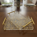Material and Finish: The main body of the trays is constructed from clear, high-quality acrylic or resin. This transparent material is embedded with a generous amount of gold flakes or gold leaf, giving the trays a sparkling, luxurious, and gilded appearance.