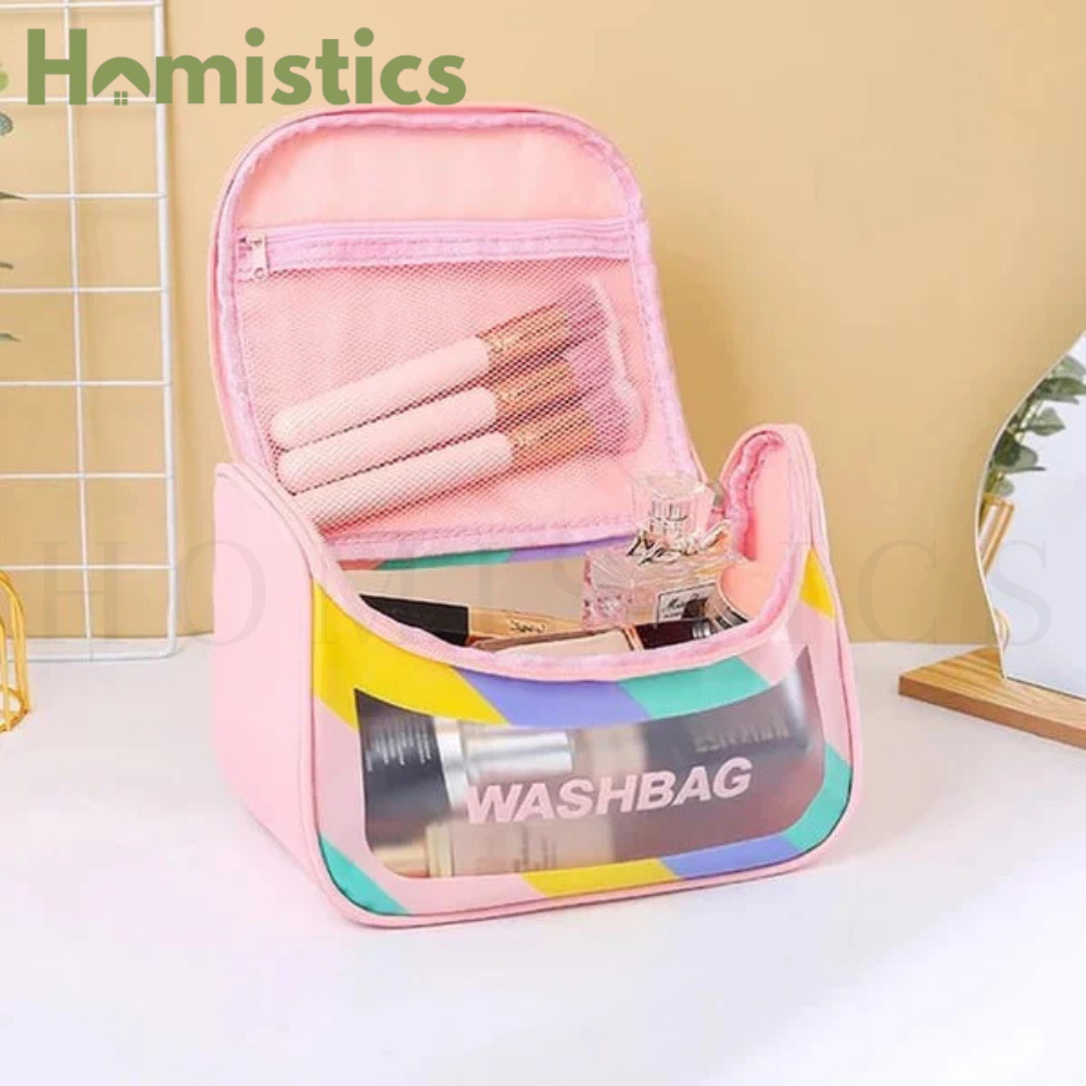 Aesthetic Transparent PU Makeup Bag – Large Waterproof Travel Washbag