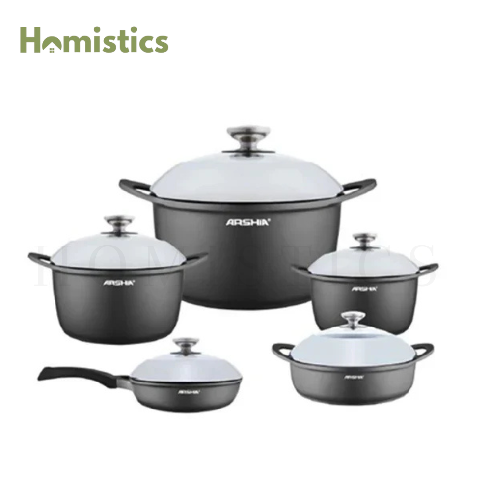 Enhance your cooking experience with our premium 10-piece die-cast aluminum cookware sel Designed for optimal performance, this set combines durability, efficient heat distribution, and stylish design to meet all your culinary needs