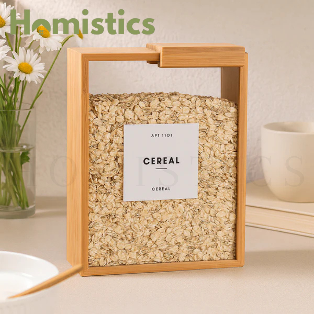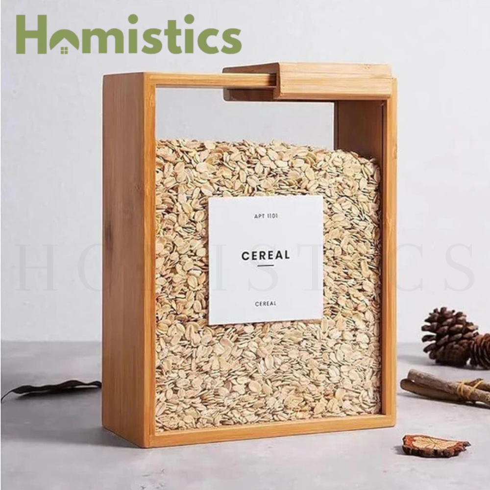 Organize your pantry with the bamboo grain storage box from Clarify.pk. This product offers a smart storage solution for kitchen staples. The bamboo grain storage box keeps rice, grains, or lentils fresh and dry. It has a unique sliding cover. This makes refilling and scooping easy. You can see the amount left inside through the clear panel. The box works well for cereals, nuts, or even beans.