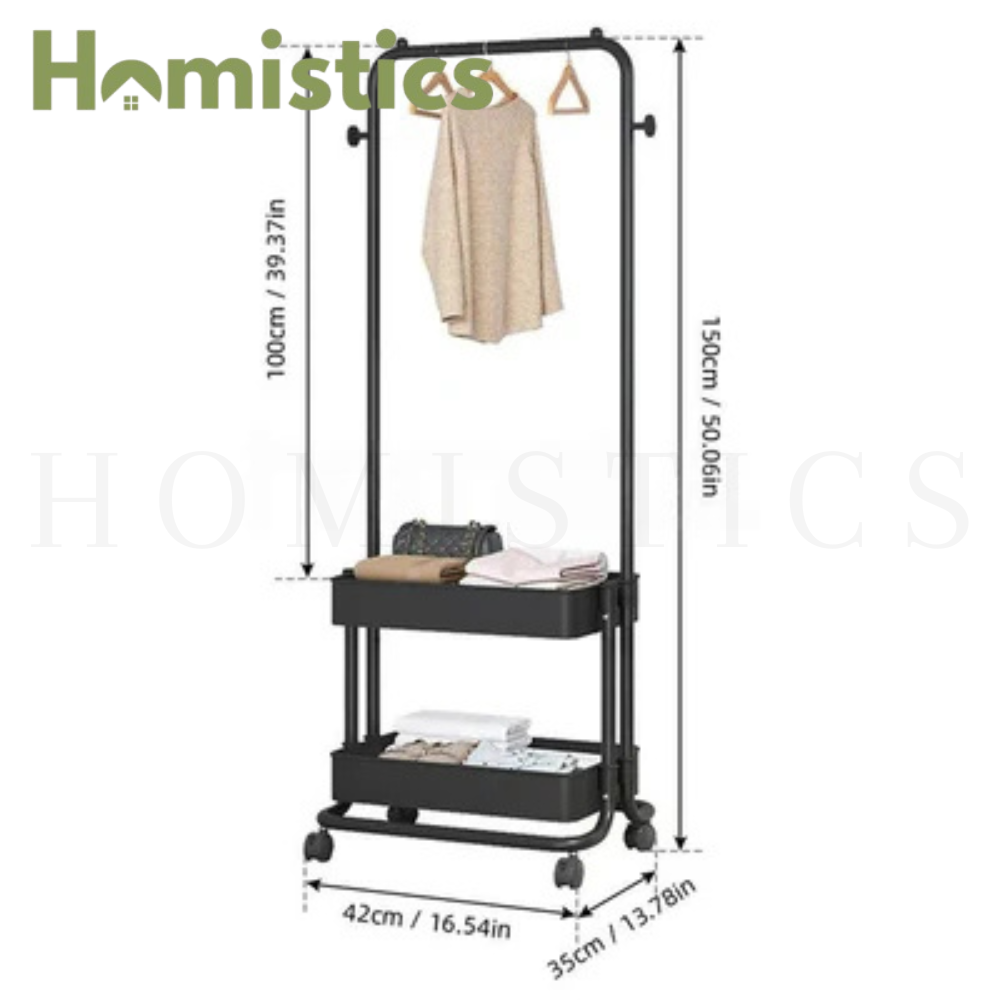 - 3-IN-1 VERSATILE DESIGN: Equipped with a hanging zone, 2 baskets and 2 cute hooks, this 3 in 1 free standing organizer can serve as coat rack, garment rack, shoe rack, etc. The hanging zone can hang your clothes without getting it crumpled or creased, double baskets provide extra storage for shoes, boxes, folded clothes and hooks for your keys, umbrella, caps, bags and other items.
