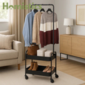 - STURDY FRAME: Made of carbon steel and PP, the reinforced design of this clothing rack can carry a variety of clothes, shoes, bags and caps, which is solid to hold heavy items, durable to use for many years. There are 4 heavy duty wheels with 360 degrees rotation and premium quality for better loading capacity and stability.