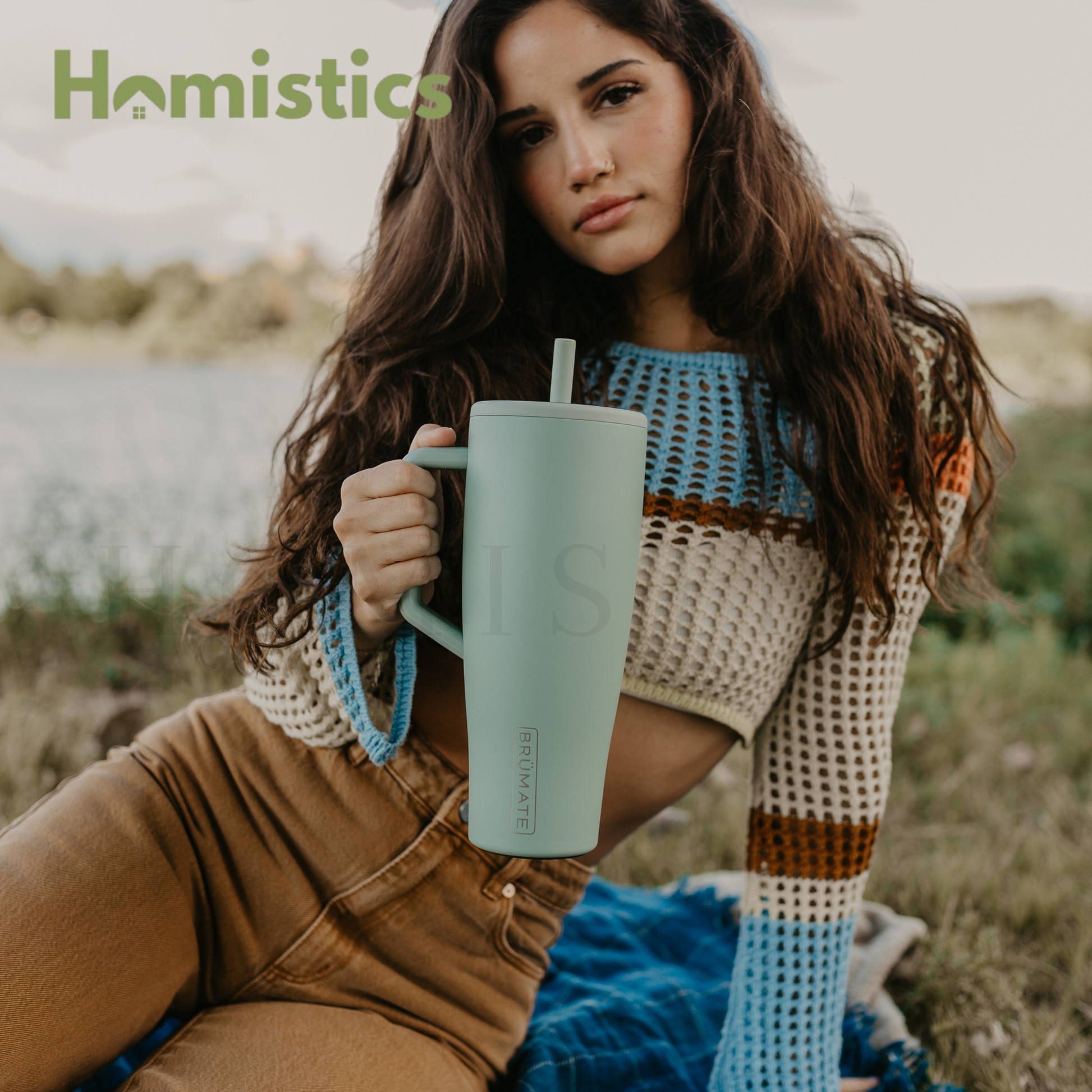 BrüMate Era 40 oz Tumbler with Handle and Straw | 100% Leakproof Insulated Tumbler with Lid and Straw | Made of Stainless Steel | Cup Holder Friendly Base | 40oz with Black Brumate Box and Pouch with Stainless Steel Straw