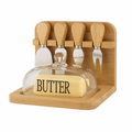Butter Dish and Cheese Knife Set with Bamboo Base and Glass Lid