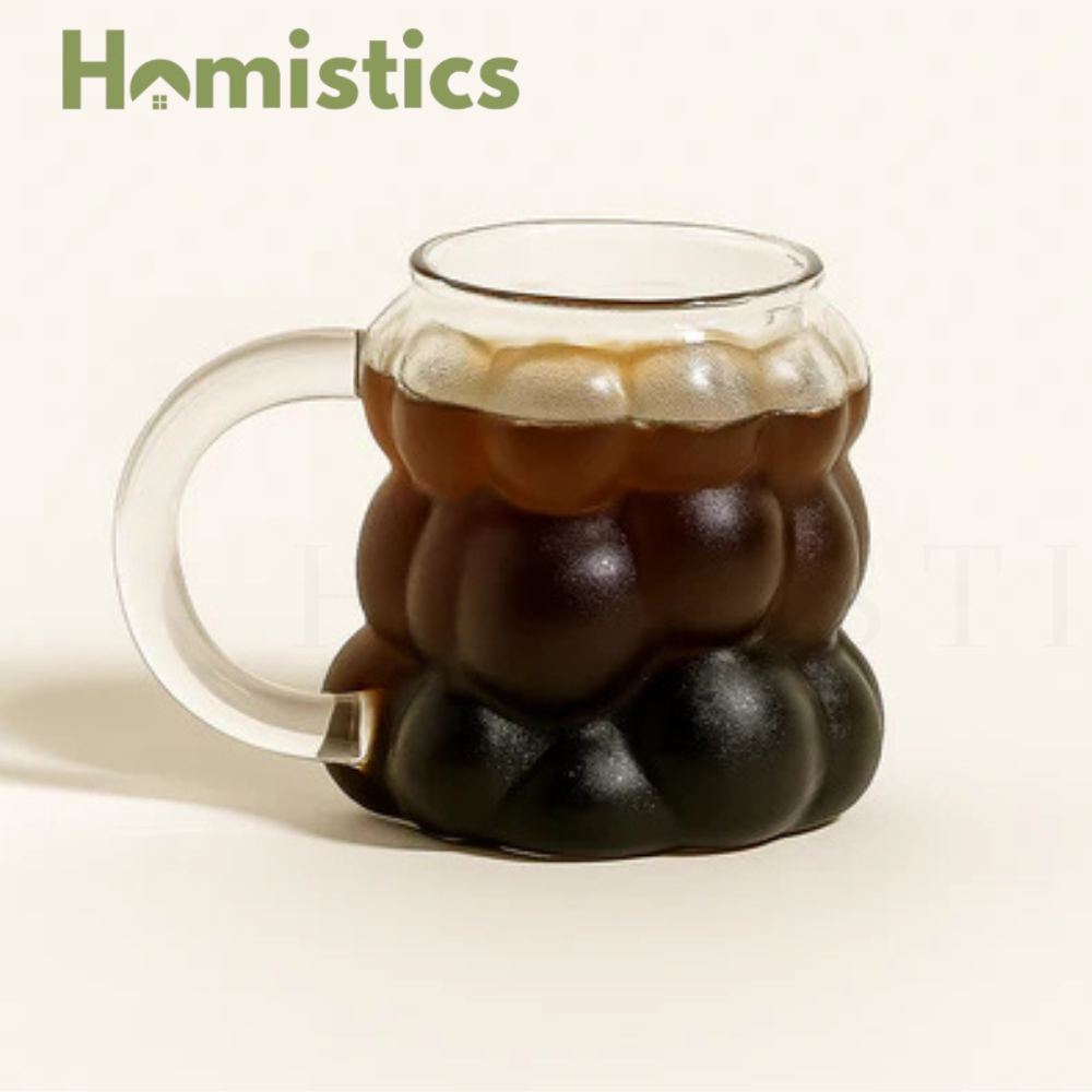 Add a touch of creativity to your daily routine with this unique bubble-style glass cup. Designed to stand out, it combines artful curves with practical durability, making it perfect for both hot and cold beverages.