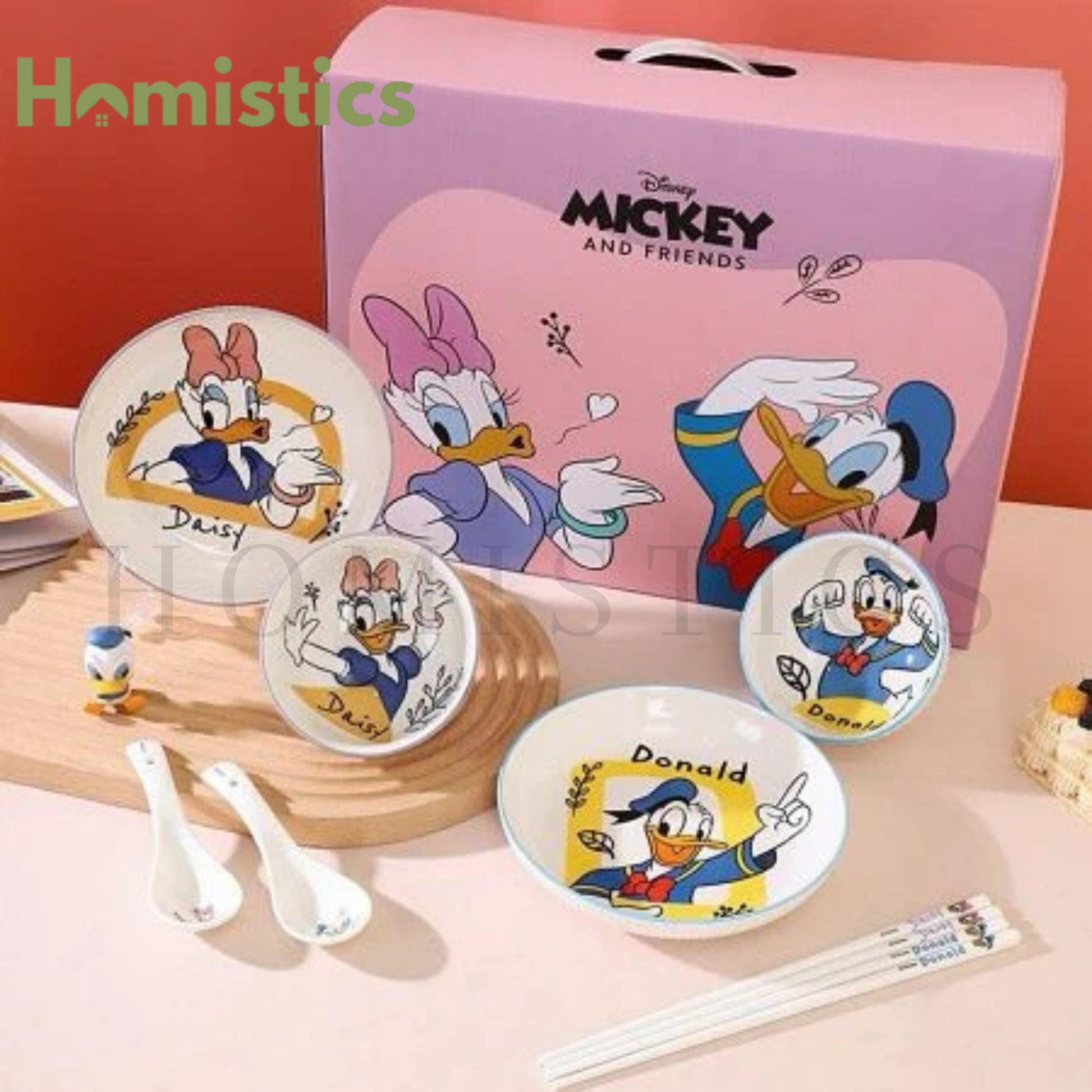 Crafted from the finest quality porcelain, this elegant set includes one dinner plate, one soup bowl, one spoon, and one matching mug — all beautifully coordinated with authentic Disney character designs. Each piece showcases vibrant, officially licensed artwork that brings beloved characters like Mickey, Minnie, Donald, or Daisy to life in a timeless and charming way. Perfect for everyday meals or special occasions, this 8-piece set combines durability, functionality, and classic Disney style — a must-have for fans and collectors alike.