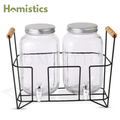 The dispensers sit on a durable black metal stand with wooden handles, providing stability and effortless serving. Whether placed on a kitchen counter, dining table, or buffet setup, this double dispenser adds a refined touch to any occasion.