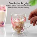 Heat-resistant double-walled glass keeps your fingers safe and cool, keeps drinks warm and won't burn your fingers.