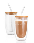 Serve up to 16 ounces of beverage bliss inside these sleek double wall coffee mugs. An extremely durable and shatterproof design with an airtight bamboo lid and glass straw make this cup a must for all your drinks.