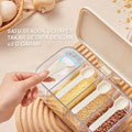 - Spill-Resistant Lid & Measuring Spoon. Each compartment is equipped with a tight-fitting lid and measuring spoon, ensuring cleanliness and ease of use.