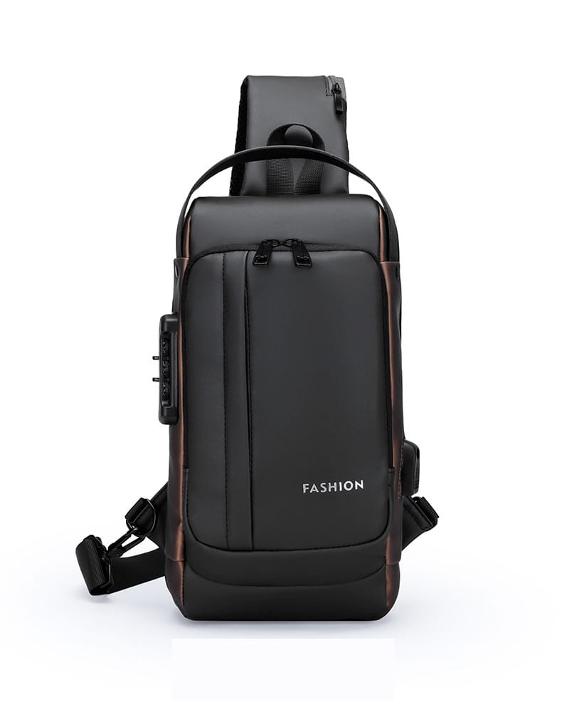 Fashion Men Sling Bag Pack with Lock Waterproof Anti-Theft Chest Bag with USB Charging Port Shoulder Bag Body Backpack with TSA Lock