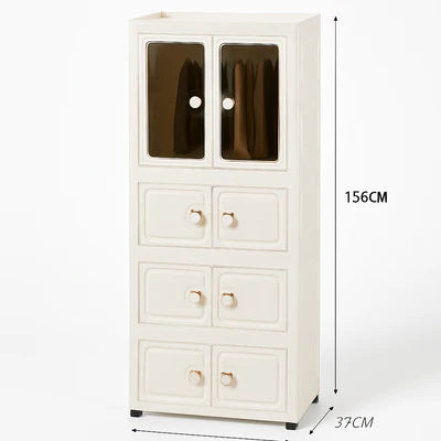 This cabinet features a multi-layer design that provides ample storage for clothing, household items, toys, bedding, and more. The dustproof doors keep your belongings clean and protected, while the transparent top doors make it easy to see stored clothes or accessories at a glance. The smooth magnetic or snap-lock door mechanism ensures effortless opening and closing.