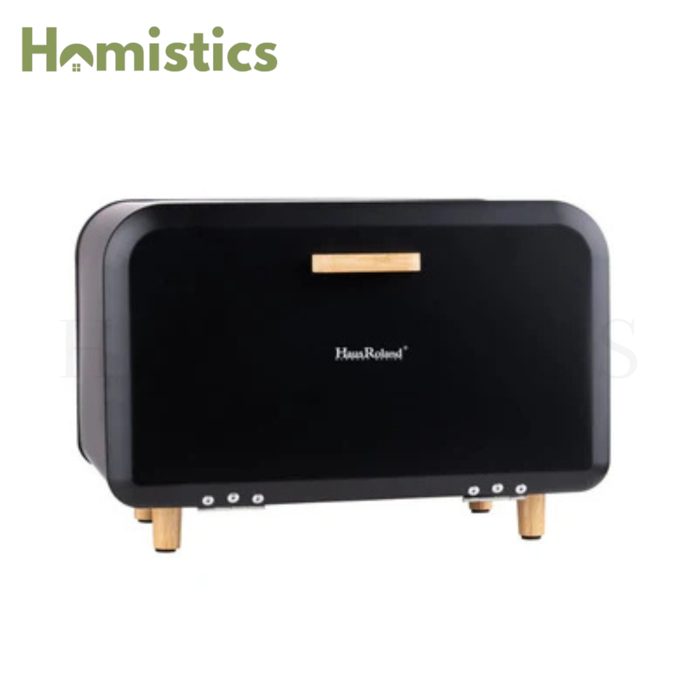 HausRoland Bread Box with Wooden Legs and Handle - Black