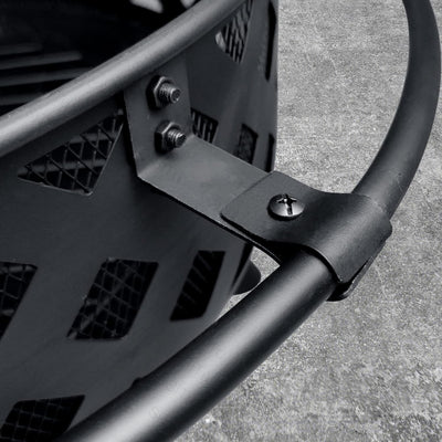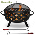 【Full set included】: The black crosswise fire pit set includes a metal spark screen for added safety from flying sparks, a weather-resistant round cover, a built-in wood-burning grate for better air flow, and a poker tool to easily control the flame.