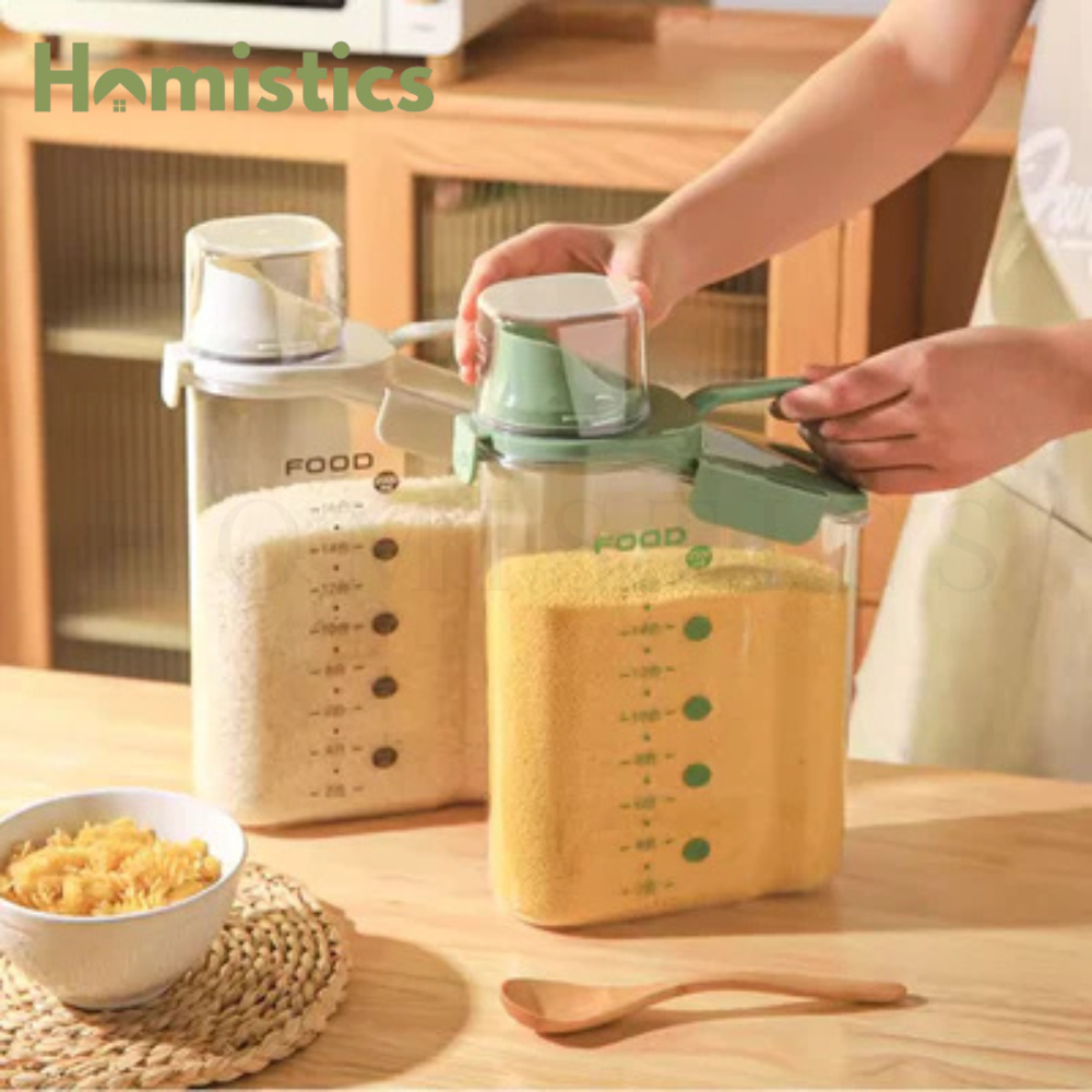 Pouring Spout with Cap: The lid design incorporates a flip-top pouring spout for convenient dispensing of dry goods without removing the entire lid.