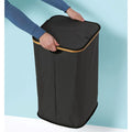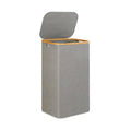 【WITH LID】: The large laundry basket is covered with modern lid, which can prevent dust from entering and protect your privacy. The lid is made of a bamboo wood frame, with a simple and modern style.