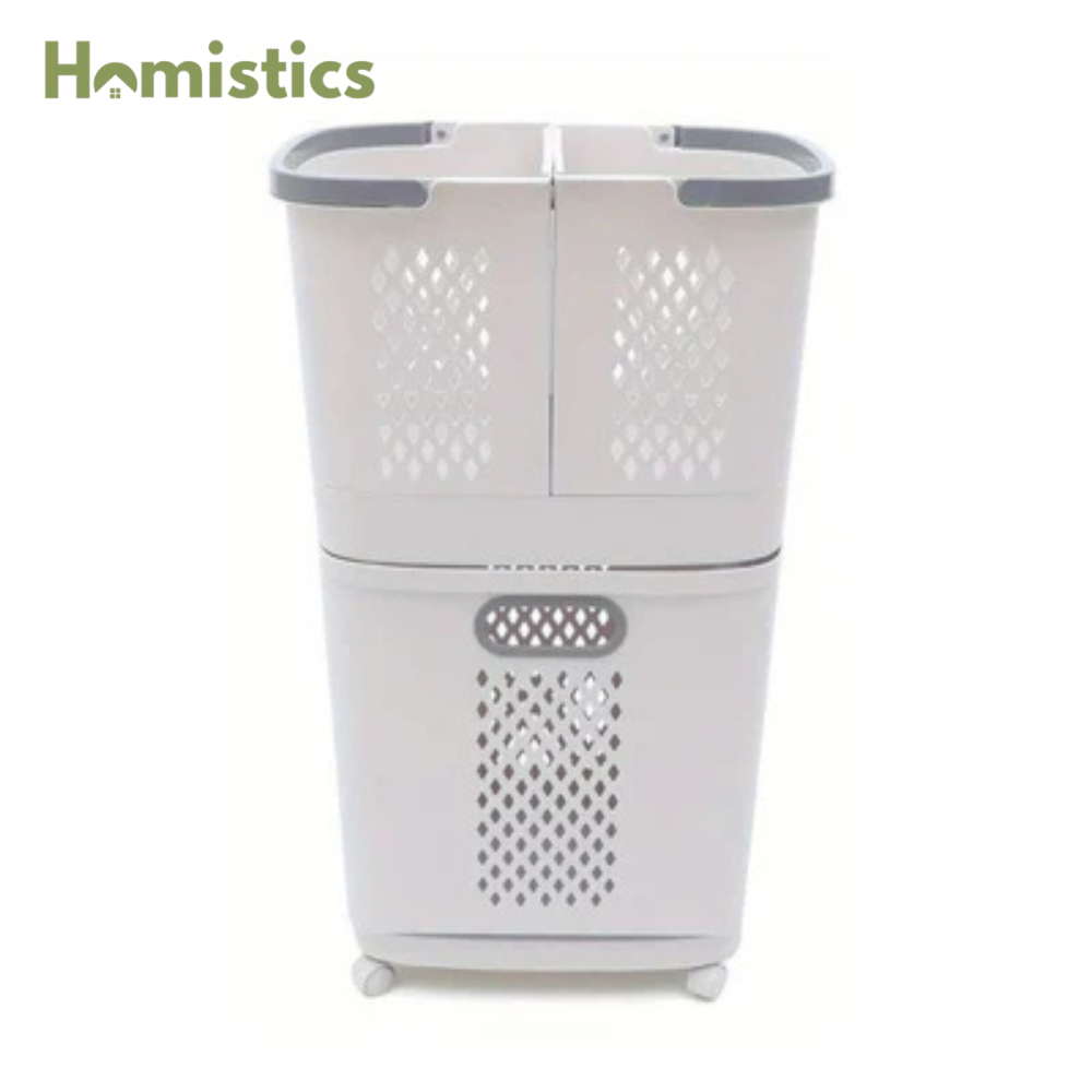 Laundry Storage Baskets Trolley Made of high PP Lightweight and easy to store 2 Layer 37 x 24.5 x 74cm, light, workmanship and practical, beautiful and clean. 2-layer design: The 2 TOP 2 baskets can be taken out and hang on the wall or washing machine they are suitable for dirty laundry collection and equipped with handles. The lower laundry basket has a larger capacity. Good ventilation: Hole design makes dirty clothes not smell so easily. Through 3 different laundry baskets, undergarments, socks and other clothes can be easily collected separately. 4 Smooth wheel designs, this can be rolled easily and easily which are flexible enough to move around any corner. It is necessary to store household items for bathroom, laundry room, storage space or anywhere. Easy to assemble: easy to install, you can set it up in minutes.