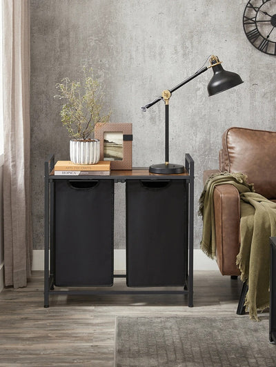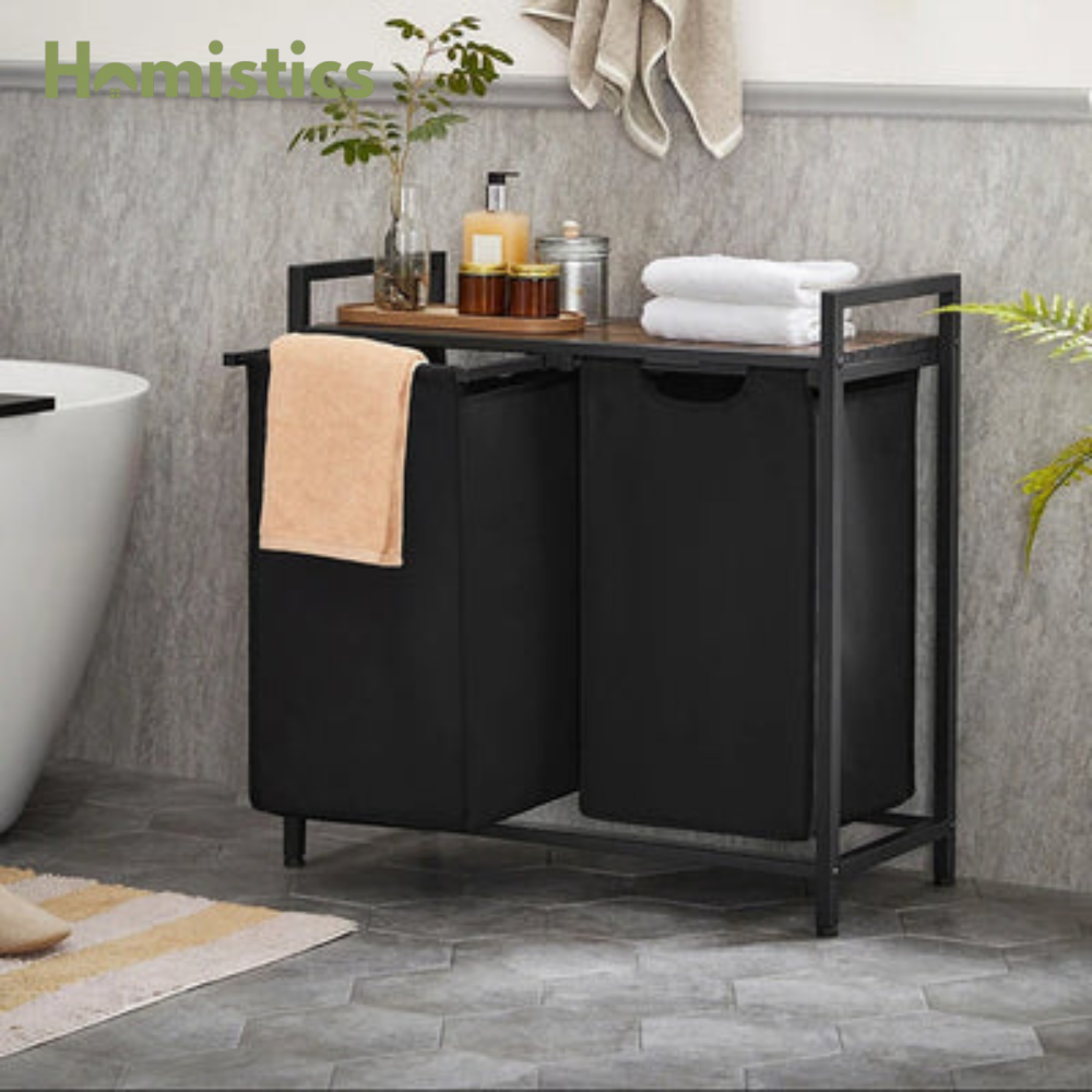 [2 Compartments for Divided Storage] This laundry hamper has a total capacity of 24.2 gallons (92L), with each liner holding 12.1 gallons (46L). Its 2-compartment design enables you to organize your laundry by type and separate light laundry from dark ones
