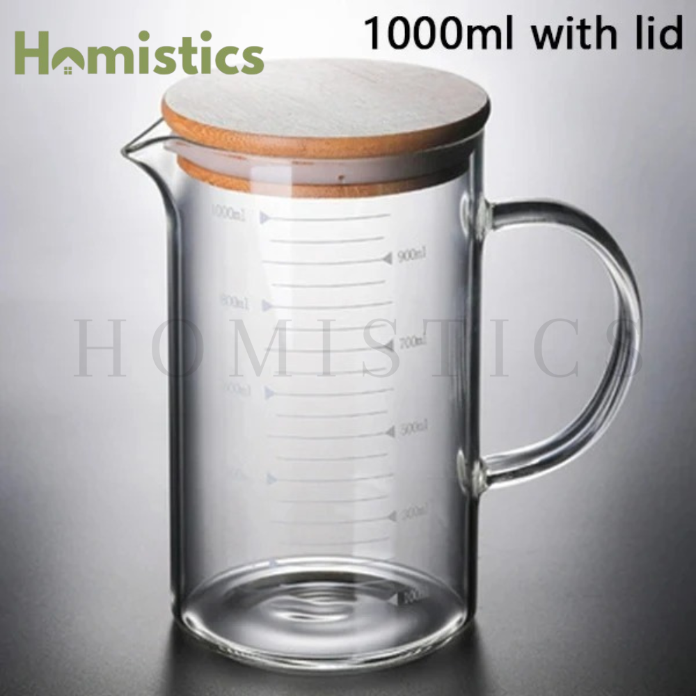 Measuring Glass Jug with Handle & Wooden Lid 1000ML